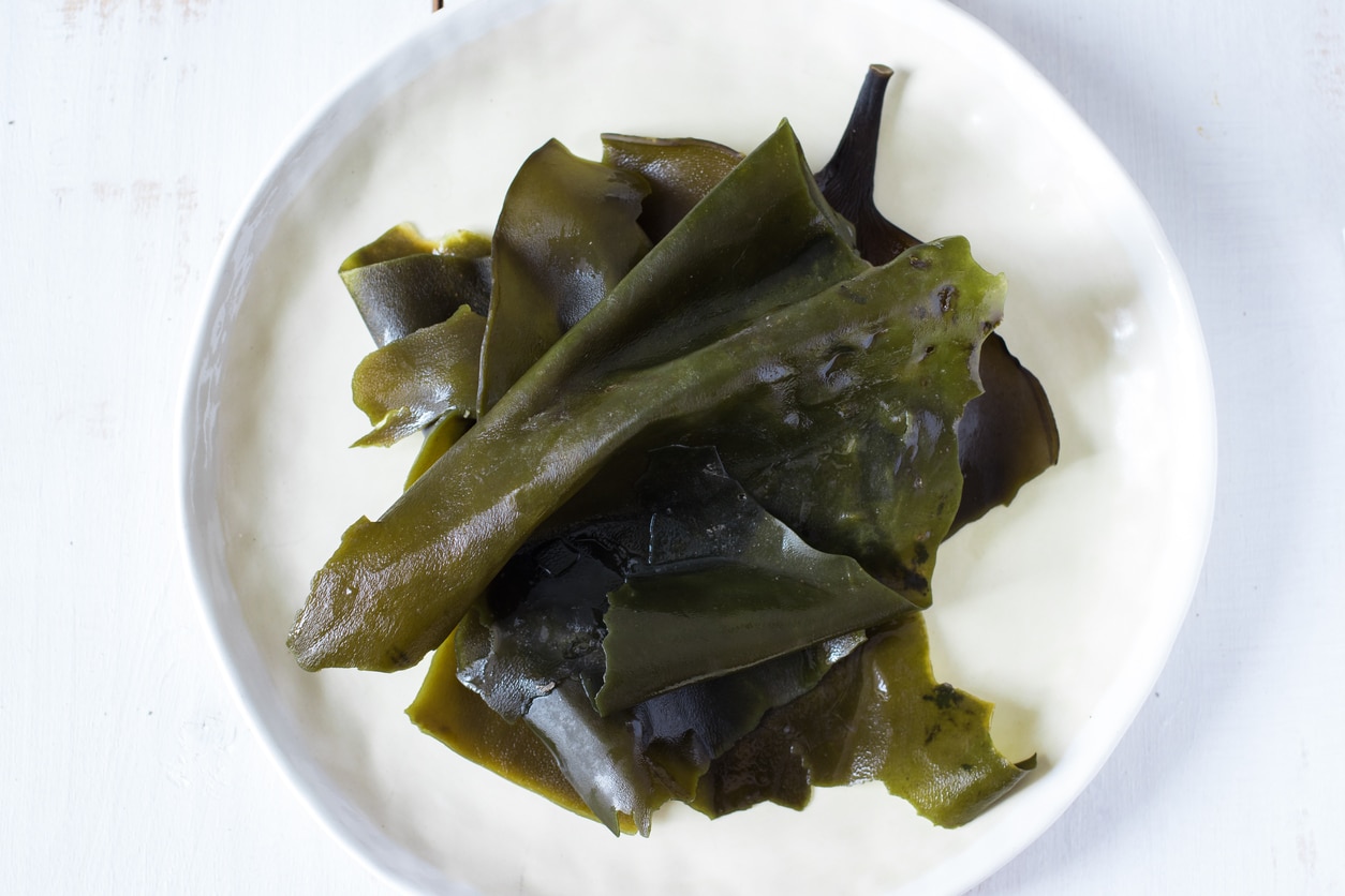 Soaked kelp, kombu seaweed. Traditional asian, japanese and korean food. Raw, vegan and vegetarian food concept.