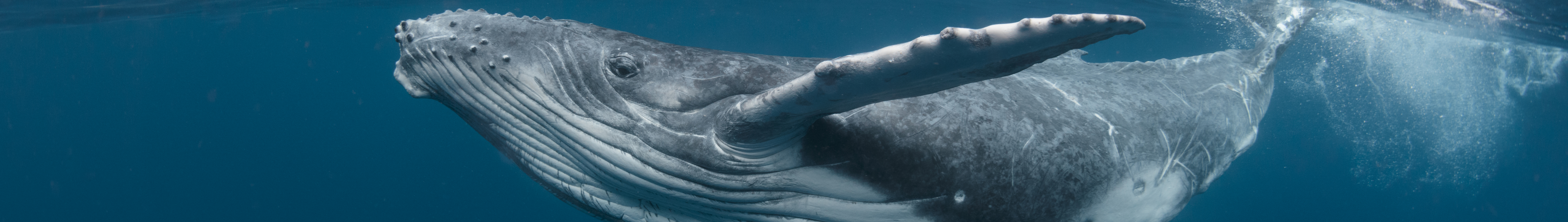 A Baby Humpback Whale Plays Near the Surface in Blue Water