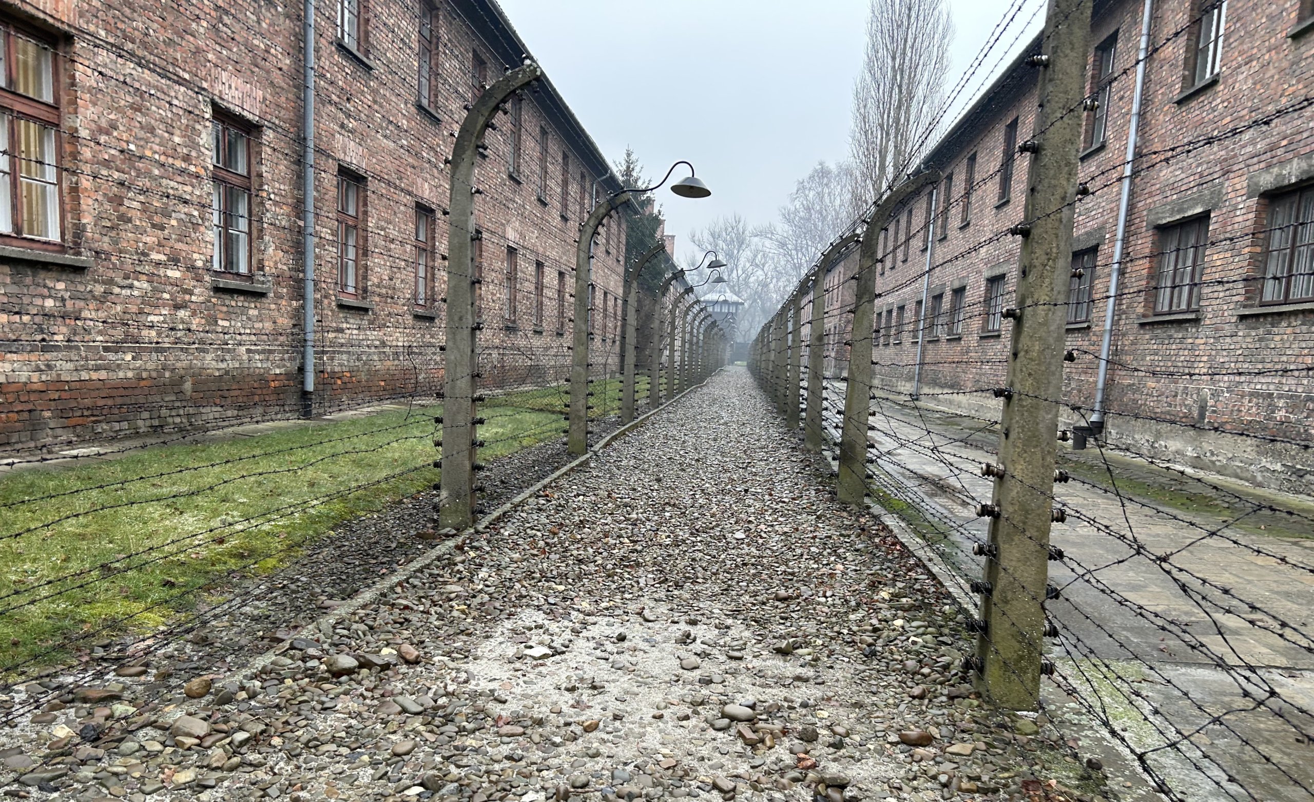 Barbed wire passage at Auschwitz I
