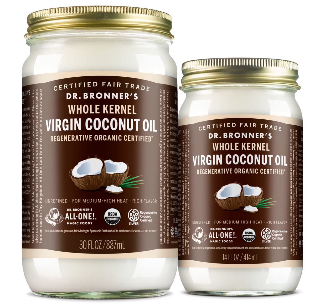 US-Coconut Oil-14oz 30oz-Whole Kernel Row - Dr. Bronner's