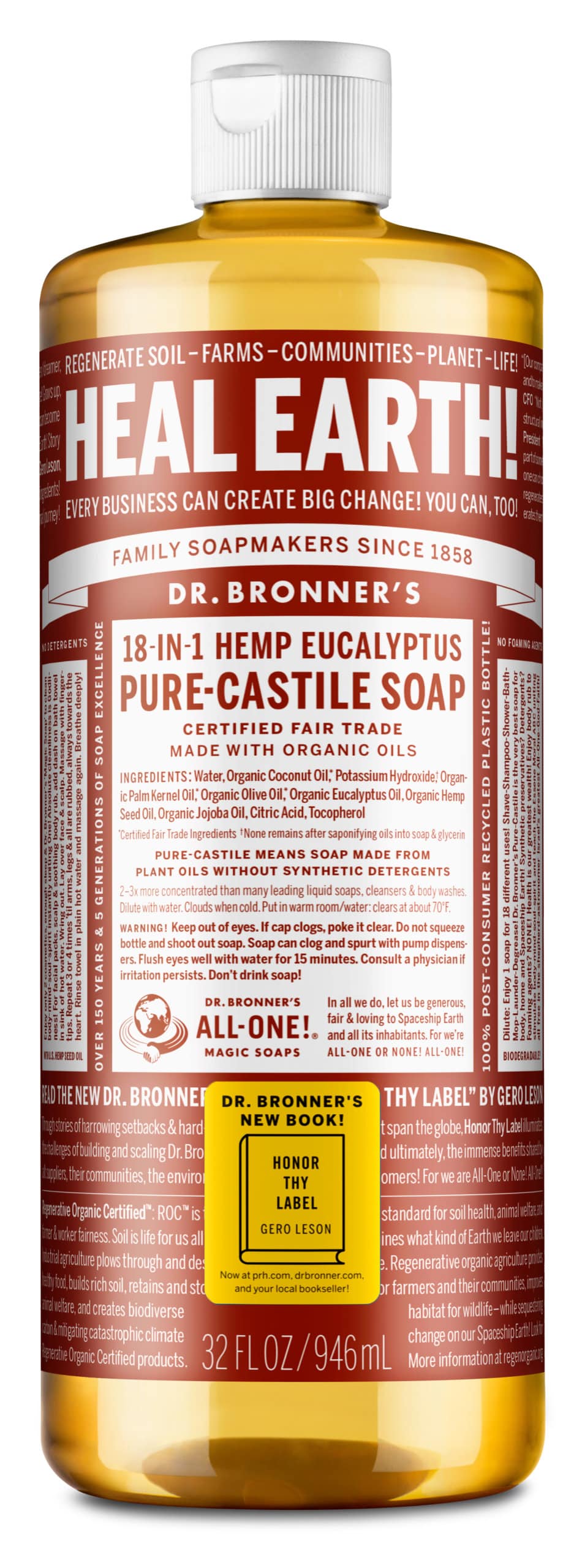 US-Liquid Soap-32oz-Eucalyptus-Honor Thy Label-Sticker - Dr. Bronner's