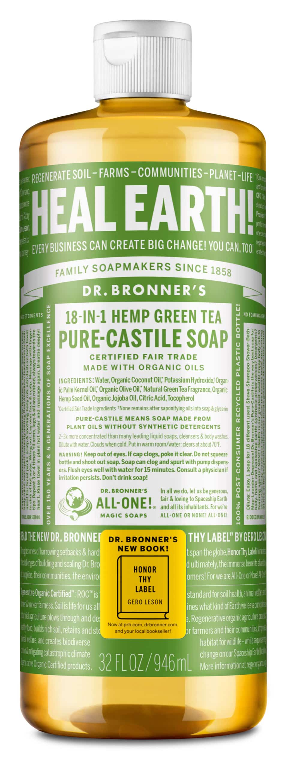 US-Liquid Soap-32oz-Green Tea-Honor Thy Label-Sticker - Dr. Bronner's